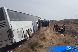 ۱۹ مصدوم در حادثه انحراف اتوبوس در محور مهریز به انار