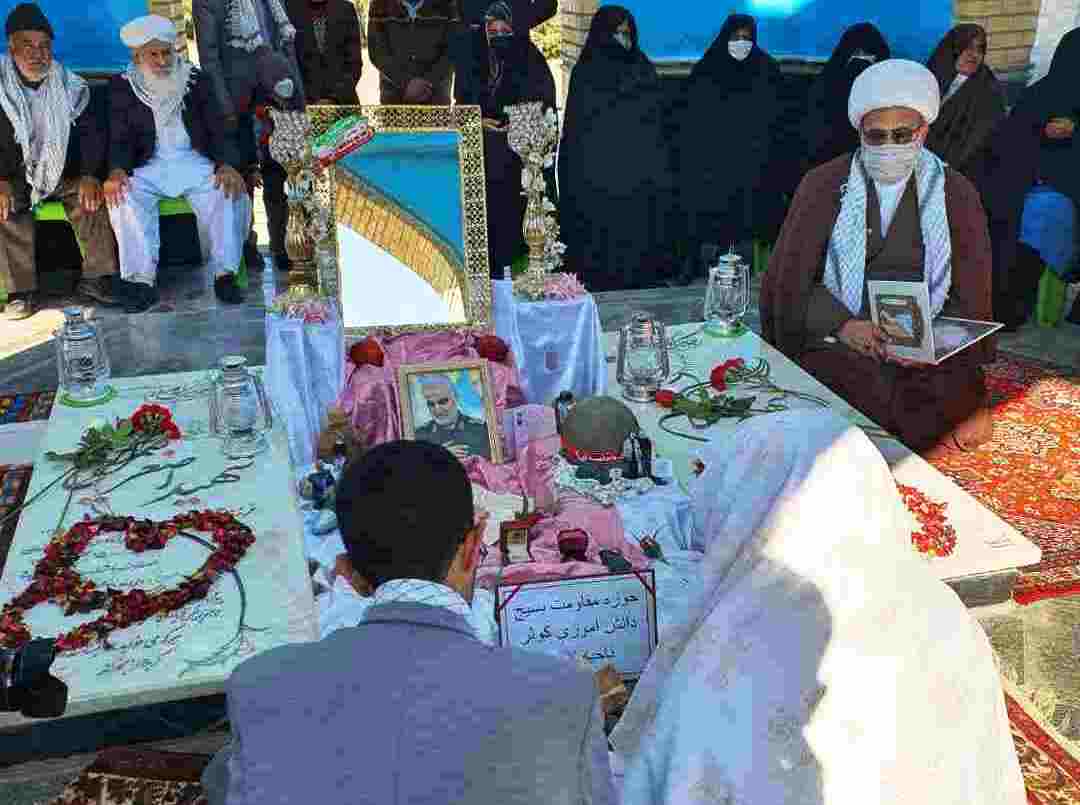 این مراسم با حضور جانشین سپاه تایباد، روحانیون، جمعی از بسیجیان و اعضای شورای دفتر نمایندگی بنیاد حفظ آثار و نشر ارزش‌های دفاع مقدس برگزار که خطبه عقد توسط حجت‌الاسلام‌والمسلمین مرتضی محدثی فرزند آیت‌الله محدثی مدیر حوزه علمیه امام جعفر صادق (ع) تایباد جاری شد.