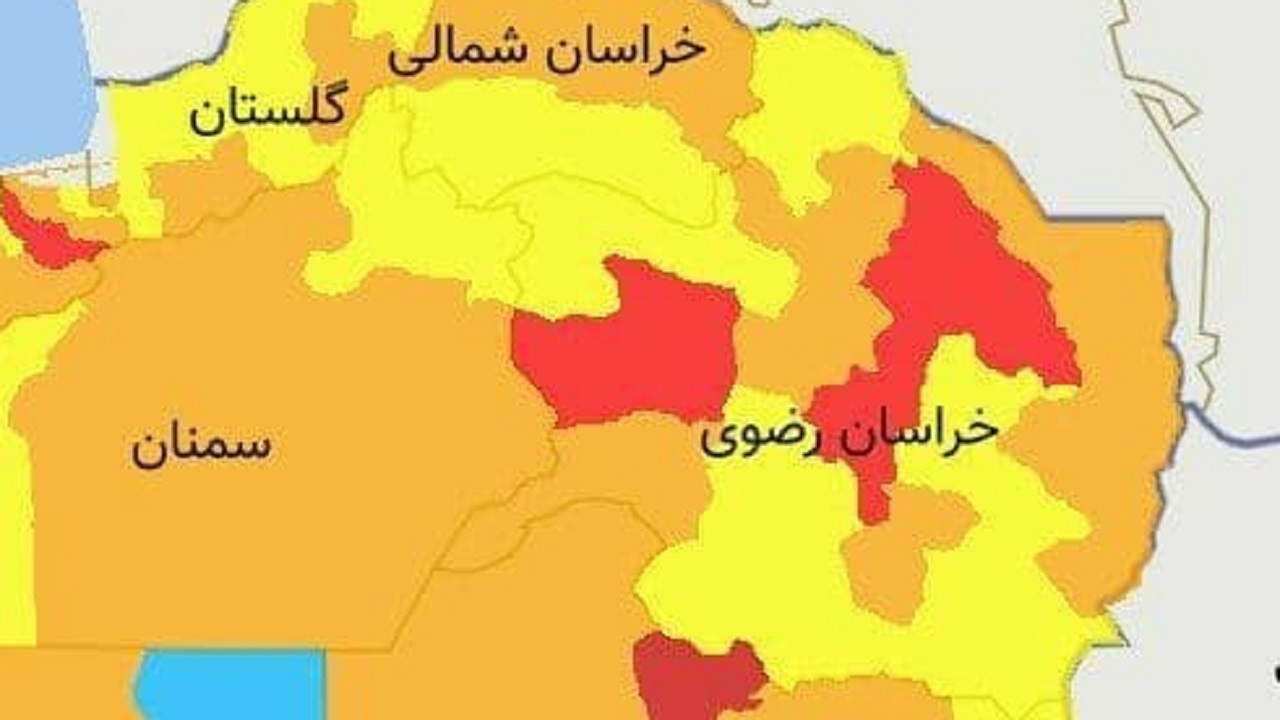شهرستان های تربت جام، تایباد، نیشابور، رشتخوار و بردسکن در وضعیت نارنجی کرونا قرار دارند.