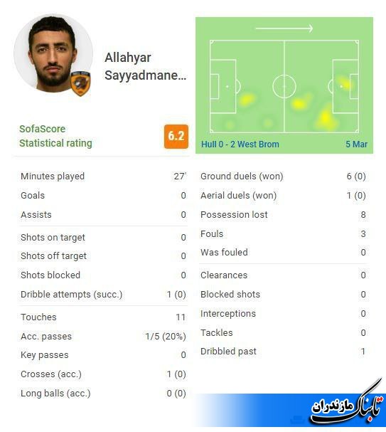 اللهیار صیادمنش لژیونر ملی پوش و مازندرانی کشورمان شب گذشته اولین بازی خود را در لیگ انگلیس انجام داد .