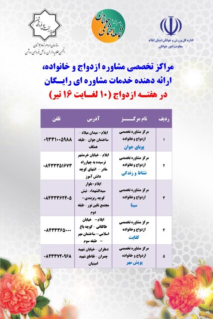 به گزارش تابناک ایلام؛ محمدرضا تردست اظهار کرد: این خدمات مشاوره ای رایگان در هفته ازدواج از دهم تا شانزدهم تیر در مراکز تخصصی مشاوره ازدواج و خانواده استان ارائه میشود