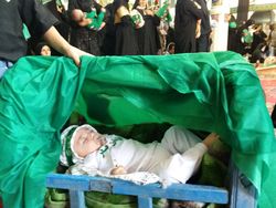 لازم به ذکر است دراین مراسم مداحان اهل بیت به روضه خوانی پرداخته و مادران عزادار با چشمان اشک بار ارادت خالصانه خودرا به سرباز ۶ ماهه کربلا ابراز داشتند.