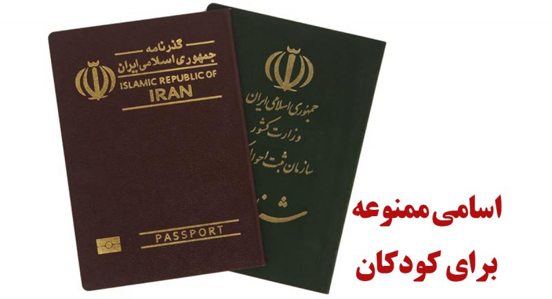 به موجب ماده ۲۰ قانون ثبت احوال و تبصره‌های آن، انتخاب نام‌هایی که در فهرست نام‌های ممنوعه قرار دارد، قدغن است و دارندگان آن‌ها می‌توانند با رعایت مقررات مربوطه نسبت به تغییر آن اقدام کنند.