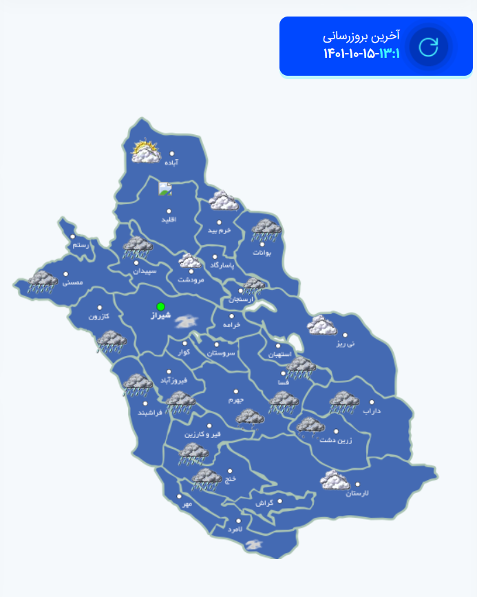 نقشه هواشناسی بعداز ظهر 15 دی فارس