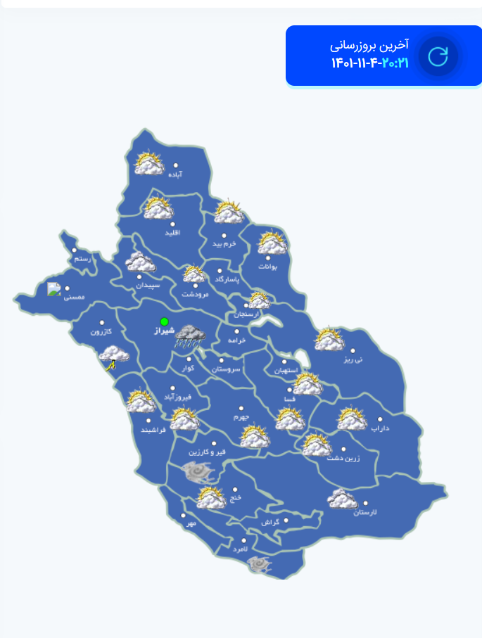 نقشه هواشناسی بعداز ظهر 8 بهمن فارس