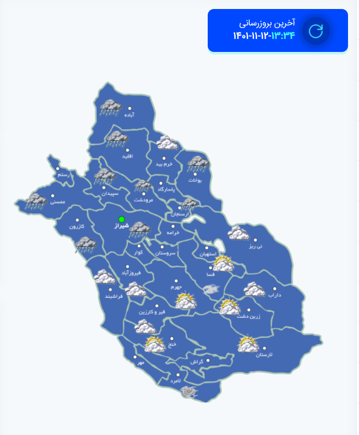 نقشه هواشناسی بعداز ظهر 12 بهمن فارس