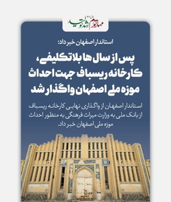 کارخانه ریسباف اصفهان پس از سال‌ها بلاتکلیفی، برای احداث موزه ملی به وزارت میراث فرهنگی واگذار شد.