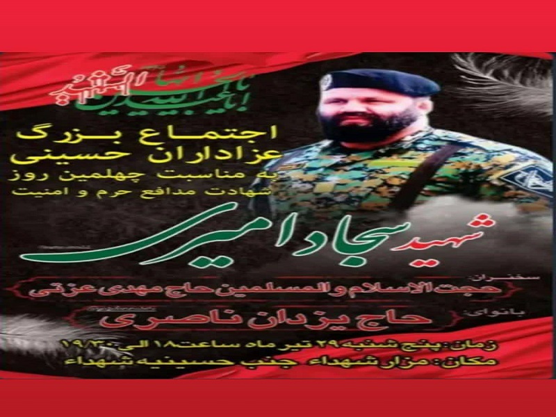 اجتماع بزرگ عزاداران حسینی با سخنرانی حجتالاسلام مهدی عزتی و مداحی یزدان ناصری همراه است.