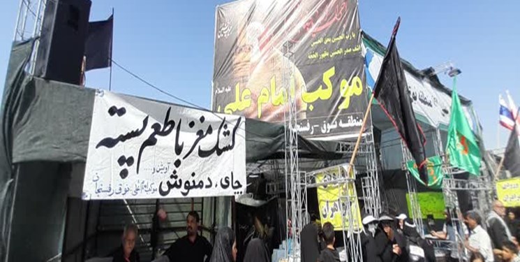 به گفته غلامرضا عباسی مدیر موکب امام علی(ع)، این موکب تا روز اربعین در سه وعده صبحانه، ناهار و شام و میان وعده صبح و عصر خدمتگزار میهمانان امام حسین(ع)است.