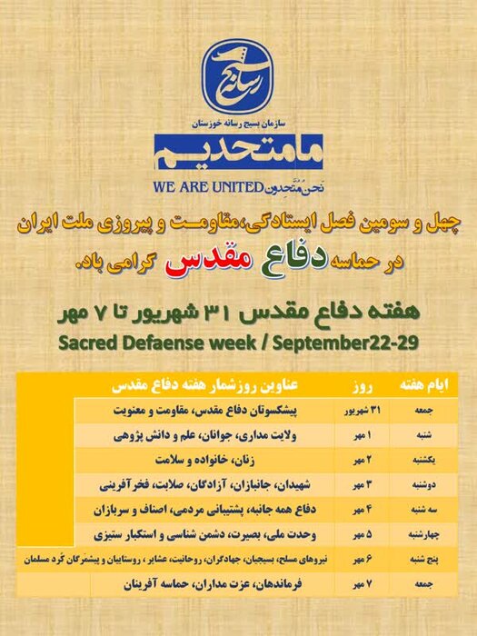 گفتنی است همزمان با هفته دفاع مقدس، ۷۶۰ برنامه متنوع در سطح استان خوزستان برگزار می‌شود.