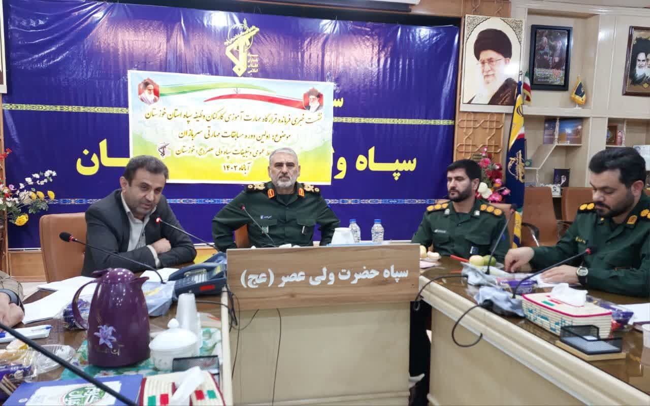 فرمانده سپاه ولی عصر(عج) خوزستان با بیان اینکه یکی از اقداماتی که سربازان در دوره خدمت سربازی آموزش میبینند حوزه امنیت در مقابل دشمنان و ضد انقلاب است، افزود: اولین مهارتی که سربازان آموزش میبینند مهارت نظامی است که علاوه بر آشنایی با سلاح، با امور مربوط به حوزه پشتیبانی مثل مخابرات و ... نیز آشنا می شوند.