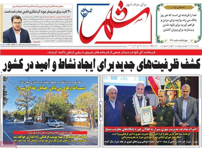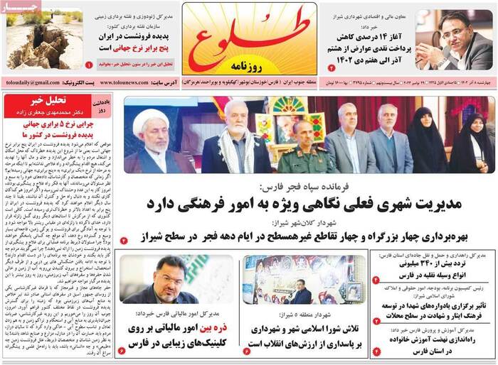 در یک نگاه صفحه اول روزنامه‌های فارس، چهارشنبه ۸ آذر ماه ۱۴۰۲ را ببینید و از عناوین نخست روزنامه‌ها مطلع شوید.