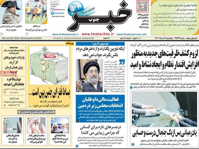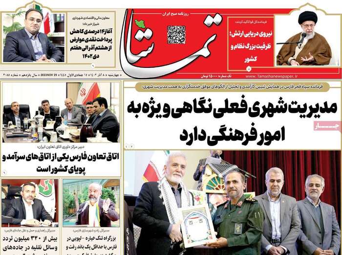 صفحه نخست روزنامه‌های 8 آذر فارس1402