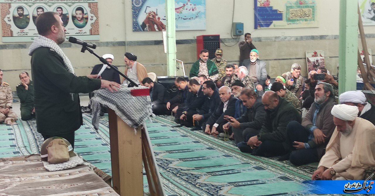 فرمانده سپاه ناحیه نکا گفت: اگر تفکر بسیجی امام(ره) و مقام معظم رهبری نبود، ما فتنه‌های مختلف را پشت سر نمی‌گذاشتیم، زیرا اولین عاملی که باعث خنثی‌سازی فتنه‌ها شد، «داشتن ولایت فقیه» بود و عامل دوم، شما «مردم» بودید که حضرت امام(ره) دفاع مقدس را توسط مردم اداره و جمهوری اسلامی را توسط مردم پایه‌گذاری کرد و فرمود: «من به پشتیبانی شما مردم دولت تعیین می‌کنم، من به پشتیبانی شما بر دهان دولت وقت مشت می‌زنم».