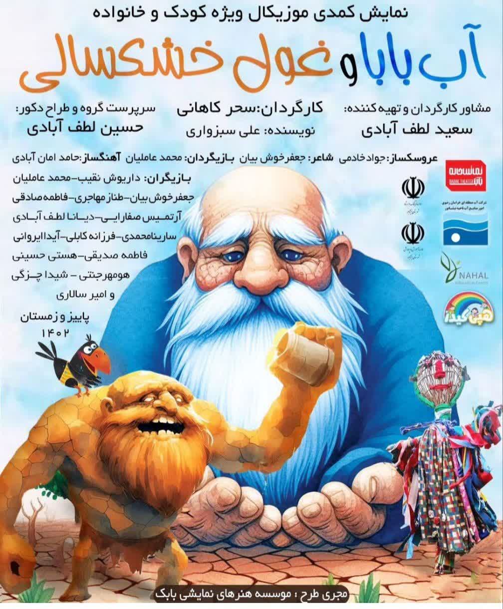به گزارش تابناک رضوی، مسئول امور هنری اداره فرهنگ وارشاد اسلامی نیشابور اظهار کرد: در نمایش" آب بابا و غول خشکسالی" بازیگران نیشابوری داریوش نقیب، محمدعاملیان، جعفر خوش بیان، هومهر جنتی، امیر سالاری، سارینا محمدی، طناز مهاجری پاریزی، فرزانه کابلی، آیدا ایروانی، فاطمه زهرا صادقی، شیدا چزگی، آرتمیس صفارایی، هستی حسینی، فاطمه صدیقی و دیانا لطف آبادی به ایفای نقش پرداخته اند.