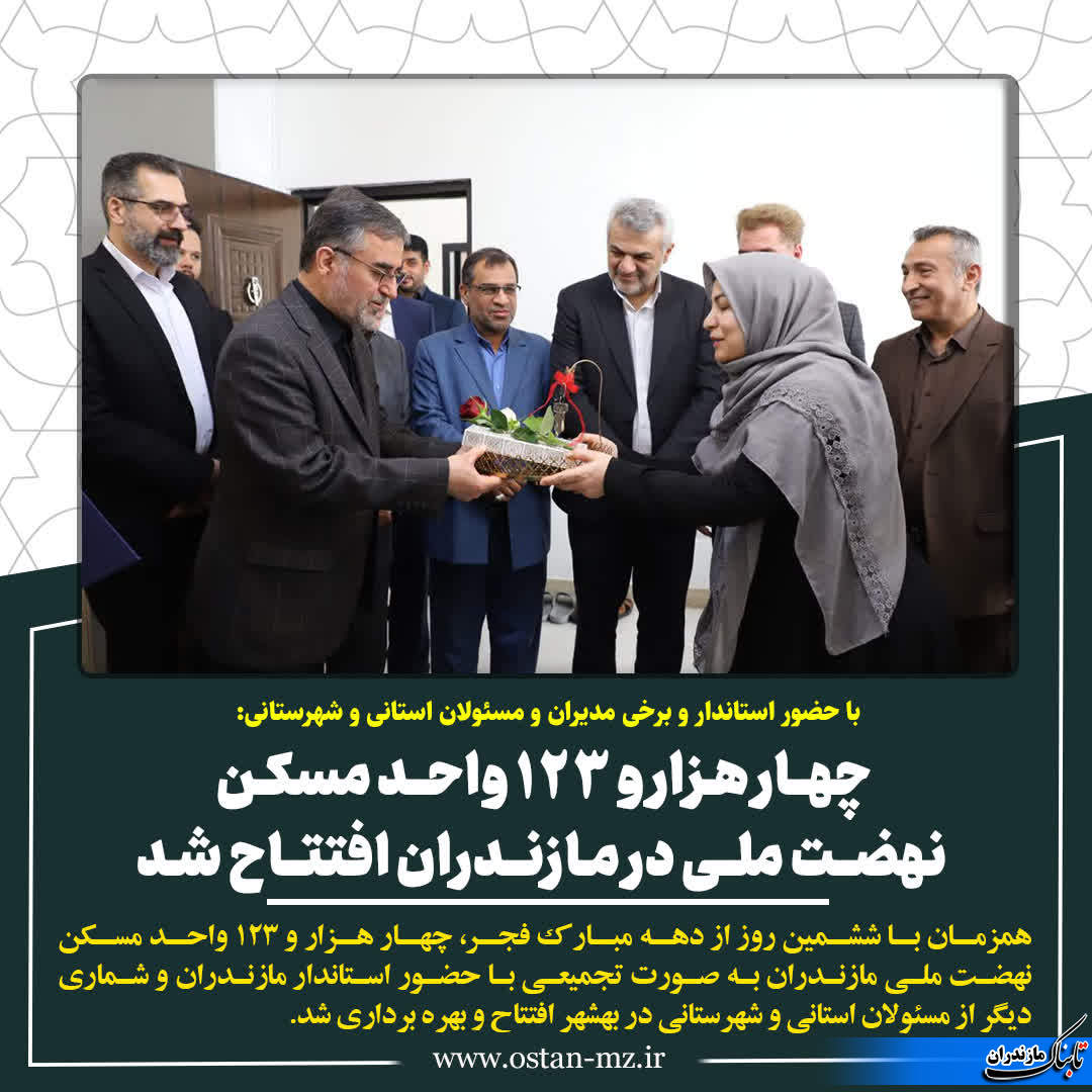 مقام عالی دولت در مازندران گفت: از چهار هزار و ۱۲۳ واحد مسکن استان که امروز به صورت تجمیعی در بهشهر افتتاح شد، ۱۲۳ واحد مسکن با زیربنای هر واحد ۸۰ و ۹۰ مترمربعی در ۱۳ هزار متر مربع از اراضی بهشهر افتتاح و تکمیل شده است.