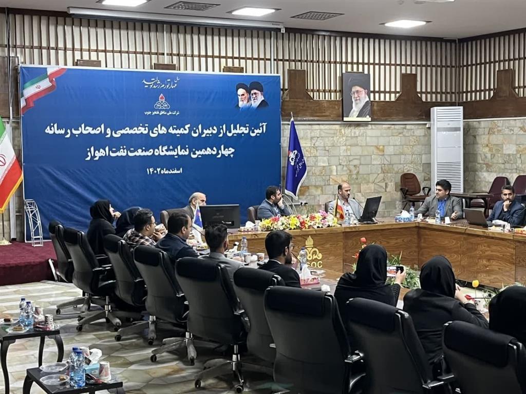 تابناک خوزستان: به گزارش روابط عمومی شرکت ملی مناطق نفت خیز جنوب، آیین تجلیل از دبیران کمیته های تخصصی و اصحاب رسانه چهاردهمین نمایشگاه صنعت نفت اهواز روز سه شنبه ١۵ اسفندماه با حضور مهندس سعید آتشبار، رئیس روابط عمومی شرکت ملی مناطق نفت‌ خیز جنوب برگزار شد.
