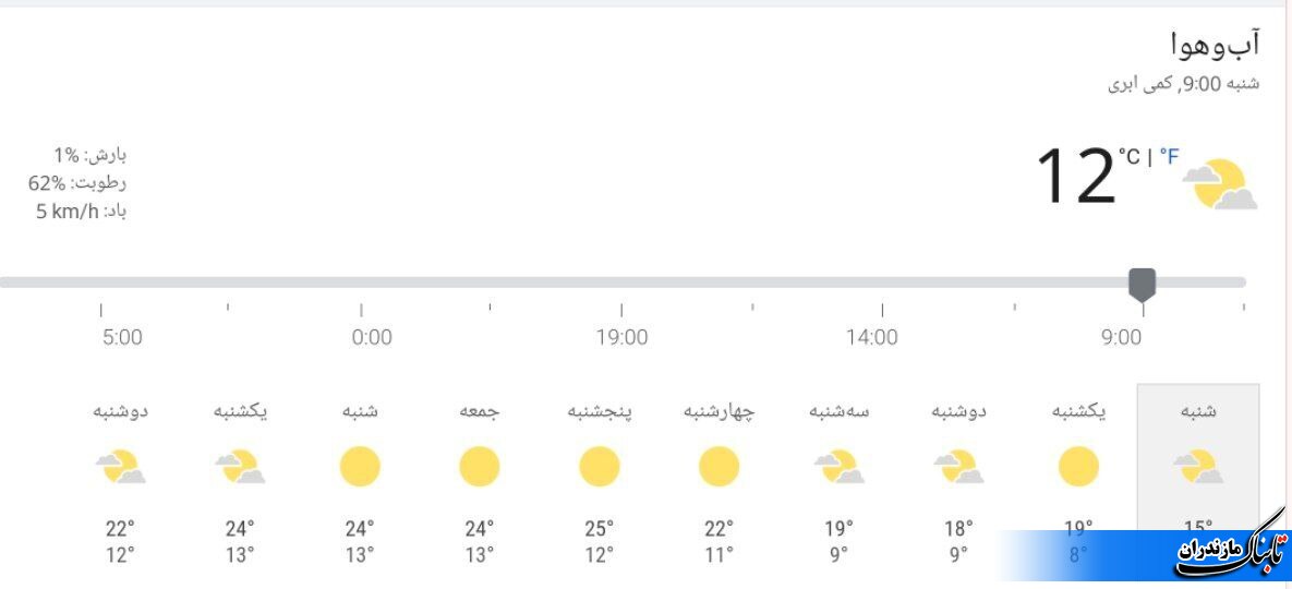 بر اساس این گزارش ، پیش بینی وضع هوای استان مازندران به این صورت می باشد.