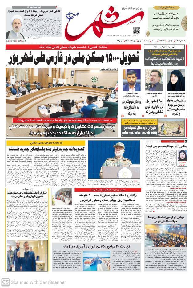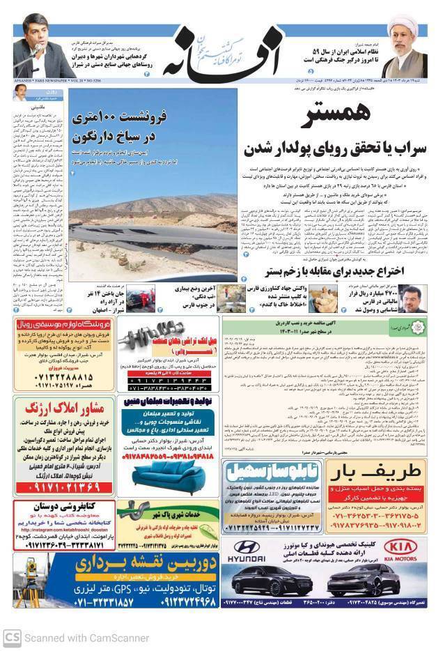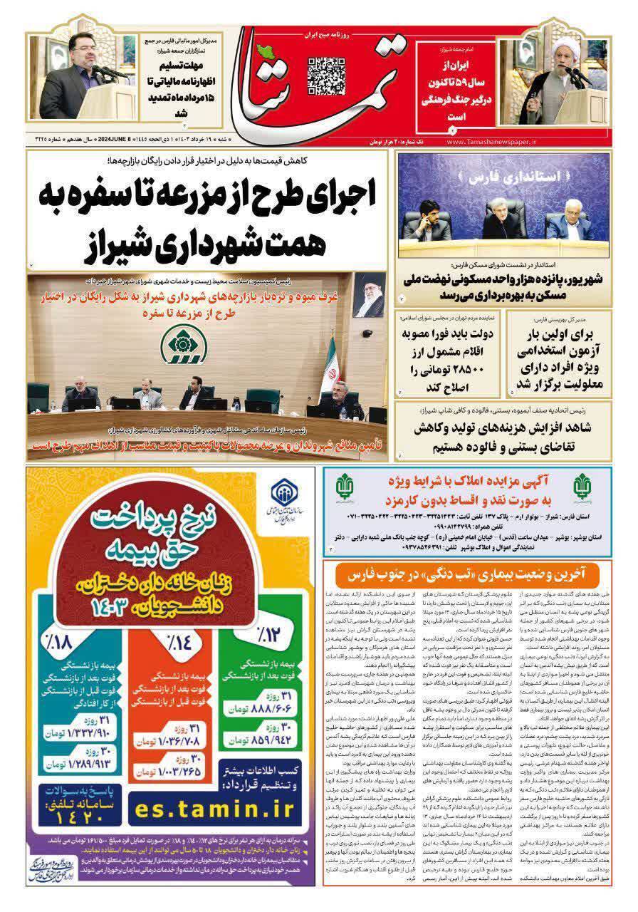 صفحه نخست روزنامه‌های 19 خرداد فارس 1403