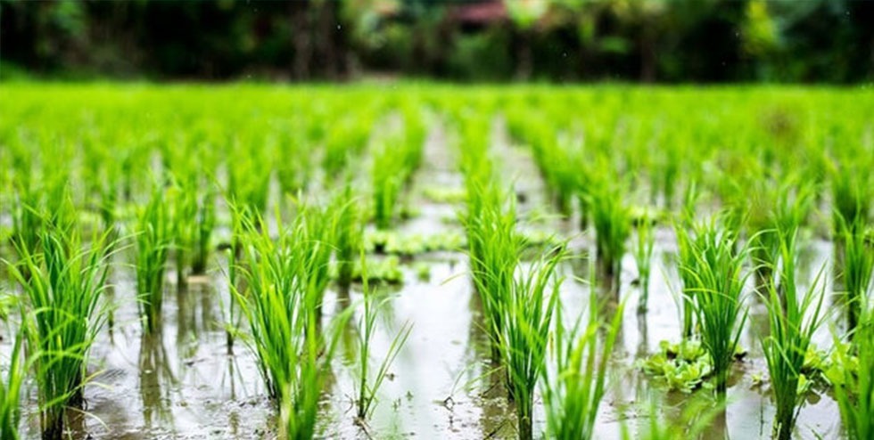 برنج که گیاهی با مصرف آب بسیار بالا است، سالانه نزدیک به 12 میلیارد متر مکعب آب مصرف می‌کند. این مقدار آب، حدود 30 درصد از منابع آبی تجدیدناپذیر منطقه را به خود اختصاص داده است.