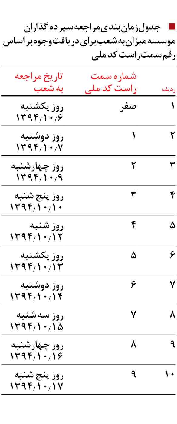 جدول زمان‌بندی مراجعه سپرده گذاران میزان اعلام شد