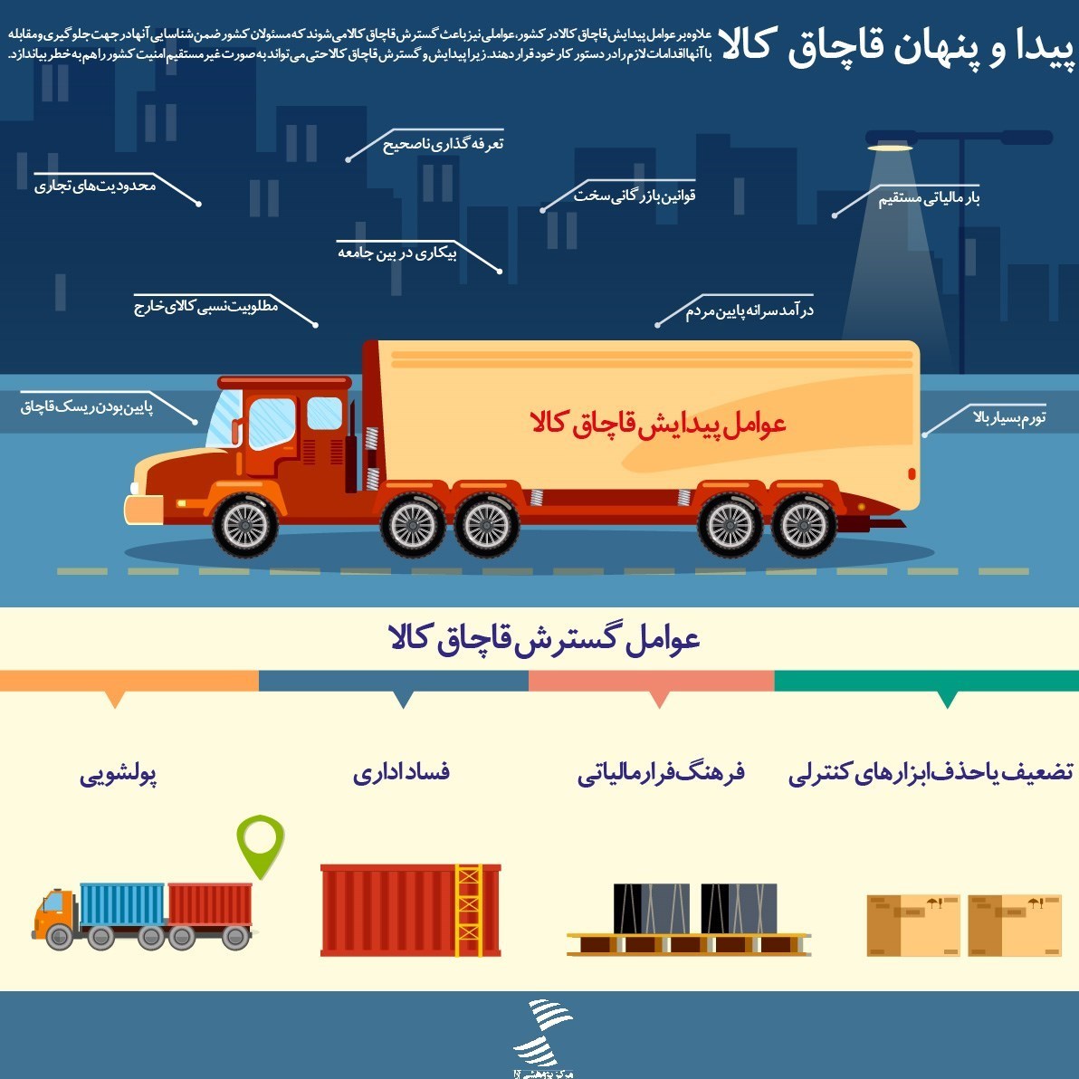 در این اینفوگرافیک عوامل پیدایش قاچاق کالا و عوامل گسترش قاچاق به تصویر کشیده است.