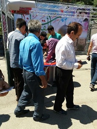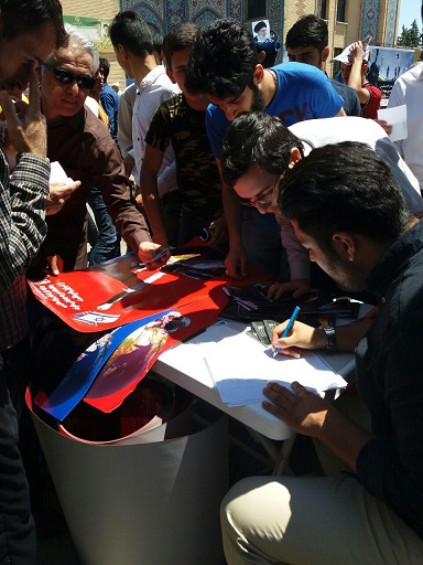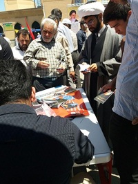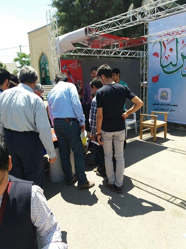 گزارش تصویری از غرفه جمعیت دفاع از ملت فلسطین استان آذربایجان غربی در روز قدس، در مصلی ارومیه.