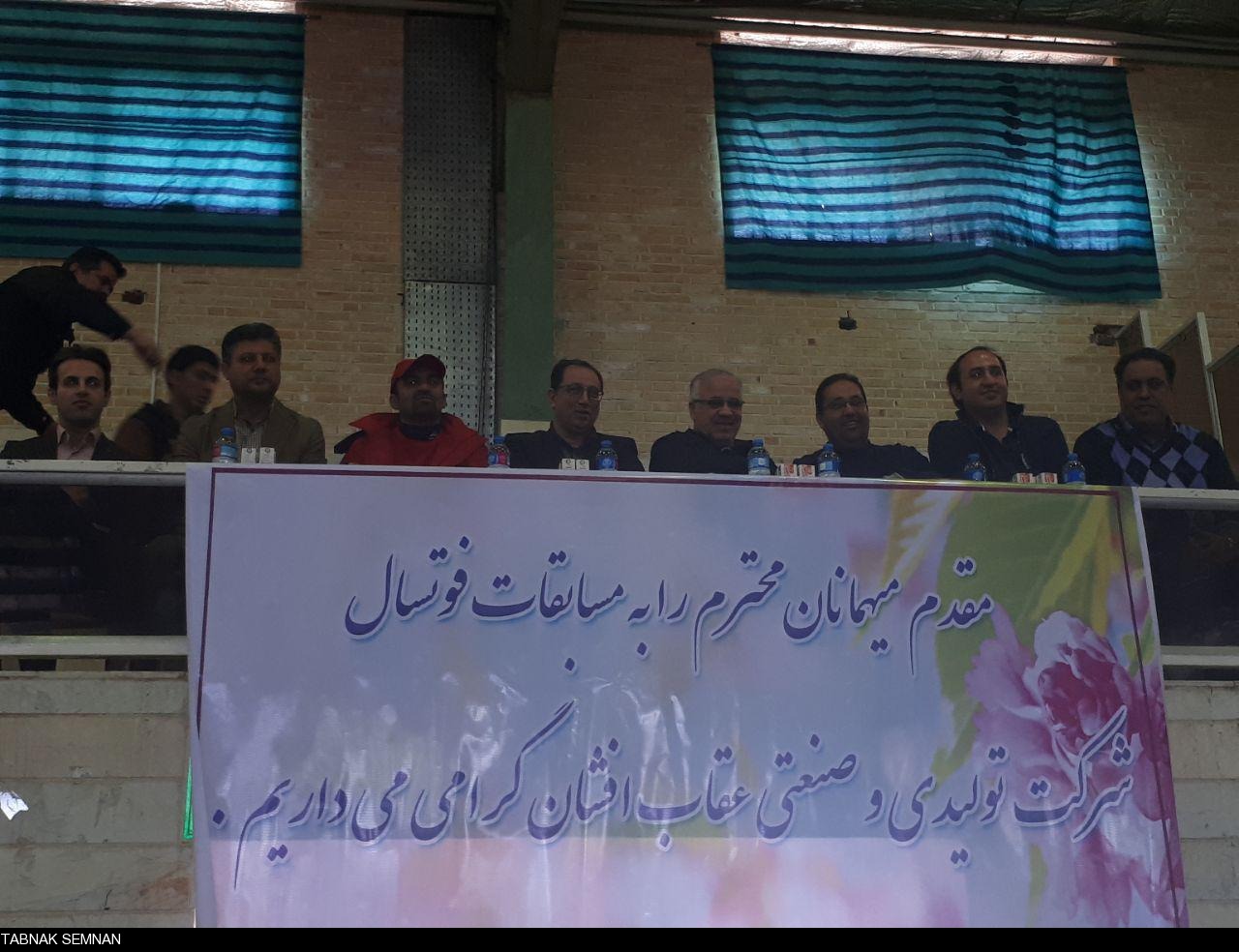 اولین دوره فوتسال شرکت عقاب افشان پس از 14 هفته در مراسمی ظهر امروز جمعه با حضور مهندس عبدالله اکبری راد نایب رئیس هیئت مدیره ،مدیران اداره کار و جمعی از مدیران آن شرکت ،در سالن کارگران سمنان برگزار شد.