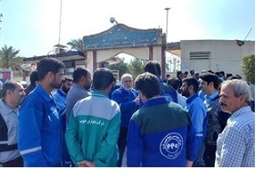 تجمع کارکنان پیمانکاری منطقه ویژه اقتصادی پتروشیمی مقابل فرمانداری بندر ماهشهر