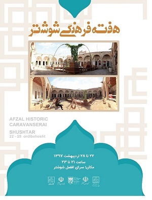 او بیان این که این جشنواره از شنبه (22 اردیبهشت 97) با همکاری اداره میراث فرهنگی و مدیریت سرای افضل شوشتر در محل کارونسرای افضل در حال برگزاری است افزود: سهشنبه شب (25 اردیبهشت 97) نیز برنامه اصلی و ویژه این رویداد را از ساعت 21 تا 23 با حضور برخی مسئولان کشوری و استانی برگزار خواهیم کرد.