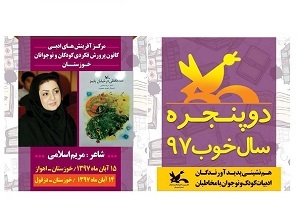 منصوره محمدنژاد کارشناس ادبی کانون پرورش فکری کودکان و نوجوانان استان خوزستان پیرامون این برنامه گفت: نشست ادبی دو پنجره کانون خوزستان با حضور مریم اسلامی، شاعر، و نویسنده کودکان، 14 و 15 آبان 97 در دو شهر دزفول و اهواز به میزبانی مراکز فرهنگی هنری کانون شماره 4 دزفول و کانون شماره یک اهواز برگزار خواهد شد.