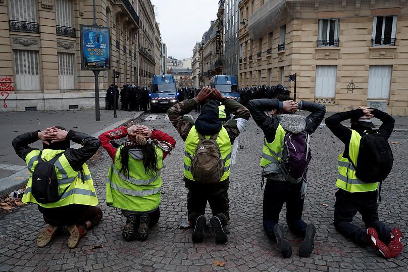 معترضان به سیاست های دولت امانوئل مکرون در حالی که نطق 13 دقیقه ای مکرون را از مکان های تظاهرات خود (خیابانها و بزرگراه ها) مشاهده می کردند؛ به شدت خشمگین شده و تظاهرات گسترده تر در روز شنبه پیش رو را خواستار شدند. اعضای جنبش ضدسرمایه داری در شبکه های اجتماعی و در مصاحبه با رسانه ها اعلام کردند رییس جمهور با سخنرانی خود فرافکنی کرده و قصد منحرف کردن افکار عمومی را دارد.