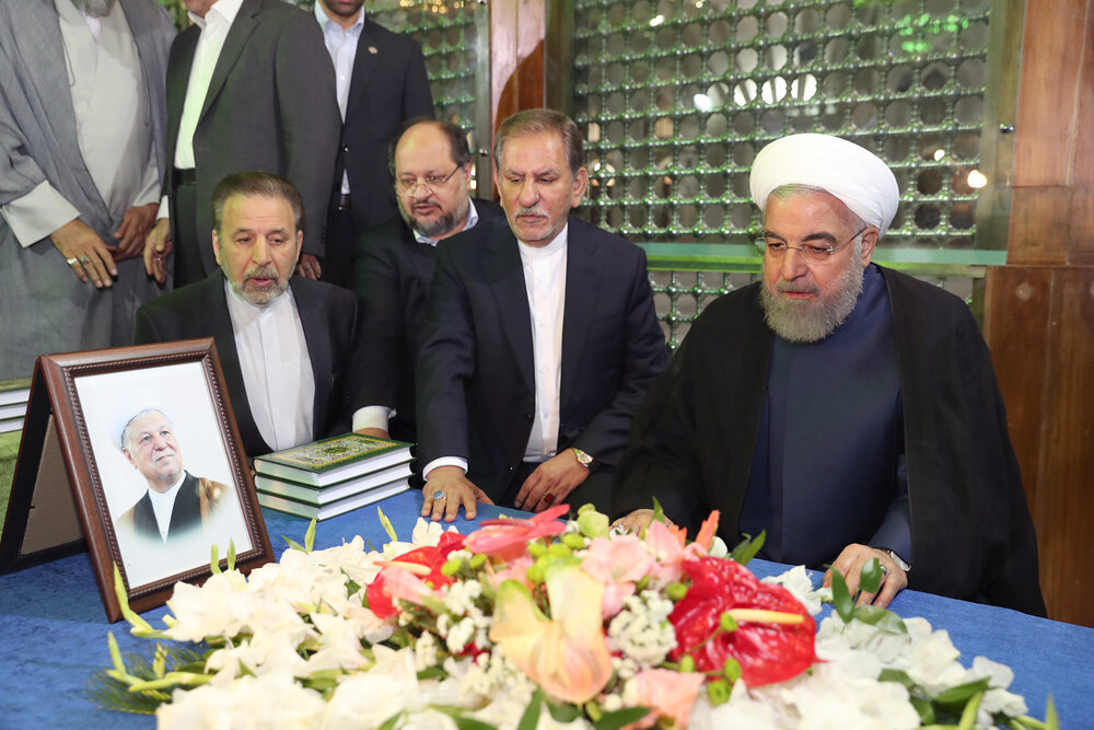 فاتحه خوانی روحانی بر سر مزار آیت الله هاشمی