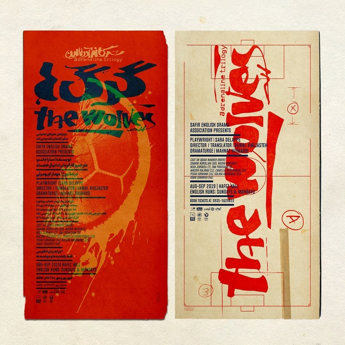 ‏‎پوستر انگليسى و فارسى نمایش «گرگ ها» به طراحی حامد حکیمی رونمایی شد.