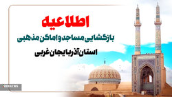 با سلام و سپاس از زحمات و تلاش های کادر بهداشتی و درمانی کشور و همراهی مردم مؤمن و فهیم ایران اسلامی ، بویژه مردم غیور استان آذربایجان غربی و نمازگزاران عزیز ، خداوند متعال را شاکریم که دستور بازگشایی مساجد و اماکن مذهبی از سوی ستاد پیشگیری از ویروس کرونا صادرگردید و بدینوسیله با همکاری مرکز رسیدگی به امور مساجد استان اعلام می شود که مساجد و اماکن مذهبی استان با رعایت اصول کامل بهداشتی ورعایت فاصله گذاری اجتماعی صرفا برای اقامه نماز جماعت بازگشایی خواهد شد.