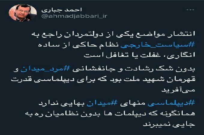 انتشار مواضع یکی از دولتمردان راجع به #سیاست_خارجی نظام حاکی از ساده انگاری، غفلت یا تغافل است.
