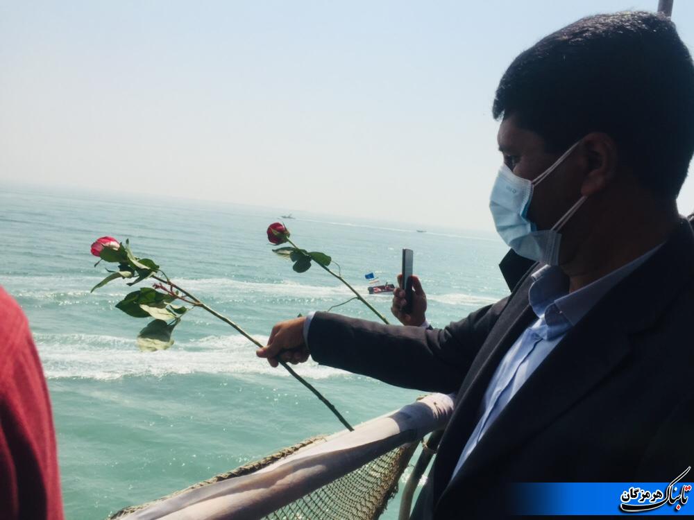 این مراسم در شناور سردار شهید حاج محمد ناظری برگزار شد و طی آن مسئولین و خانواده های شهدا به محل شهادت شهدای هواپیمایی انتقال پیدا کرده و مراسم گلباران هم توسط حاضرین و هم توسط بالگرد نیروی دریایی انجام شد.